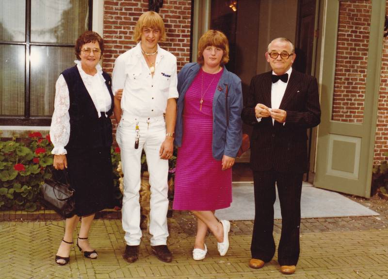 vlnr: Heinze de Vries, Frede Pedersen, Hennie Pedersen-De Vries, Jan de Vries en Renske de Vries-Kuyper